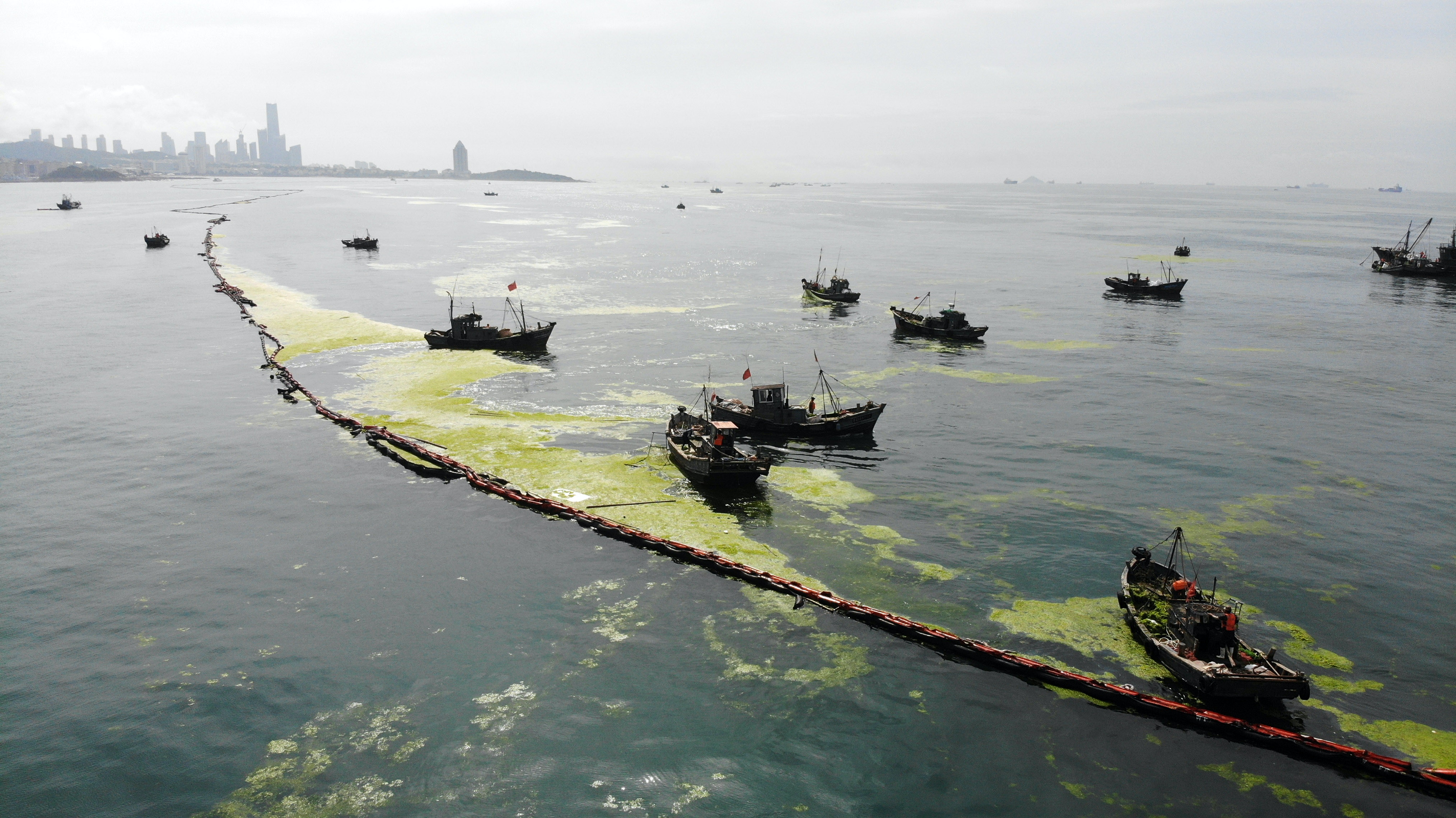 黄海海域浒苔灾害阻击战 14年前首现青岛今年设四道防线 青岛市 新浪新闻